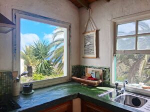 Die Küche ist ausgestattet mit Gasherd, Kochutensilien und frischen Kräutern aus dem Garten. Gäste können kreativ kochen, z. B. Mojo Rojo oder Mojo Verde. Die Feuerflamme des Gasherds sorgt für den typischen kanarischen Style. Das Haus ist sehr beliebt – einige unserer Stammgäste wählen es immer wieder, weil der Ausblick beim Kochen einfach unbezahlbar ist. Ein Highlig für Geniesser!