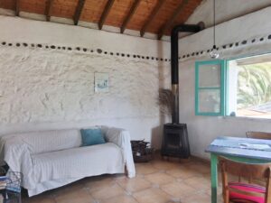 Der Wohnraum verfügt über einen Holzofen und ein Sofa auch ein Esstisch fuer 2 Personen. Das Schlafzimmer hat ein Doppelbett (2×90 x 200 cm), das zusammen oder getrennt gestellt werden kann. Bettwäsche und Handtücher werden 1x wöchentlich gewechselt.Gerne kannst du unsere Wanderkarten von der Insel la Gomera zum wandern mitnehmen.